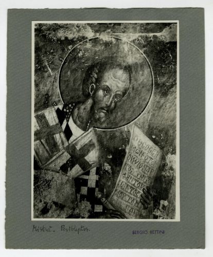 - ISCRIZIONI supporto secondario: recto: in basso a sinistra - Mistrà. Peribleptos - a matita -