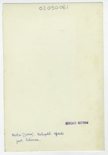 - ISCRIZIONI supporto primario: verso: in basso a sinistra - Mistrà (Grecia). Mehopolit. Affreschi/ part. Salomone - a matita -
