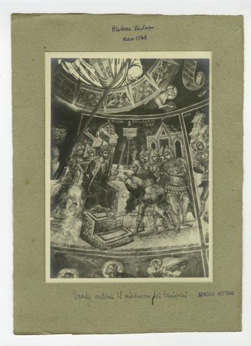 - NOTIZIE STORICO CRITICHE Gli affreschi nella chiesa del monastero di Varlaam furono realizzati nel 1548 - data riportata nell'epigrafe - da Teofane da Creta, come suggerito da Sergio Bettini (1950, p. 341). Alle pareti e nelle volte sono raffigurate le dodici feste, oltre a santi e profeti; nella tribuna a sinistra la Crocefissione e il Battesimo di Gesù; nella cupola Cristo Pantocrator fra angeli e profeti, mentre i quattro Evangelisti occupano i pennacchi. Nell'abside sono affrescati la Madonna, la Divina Liturgia e i santi gerarchi.