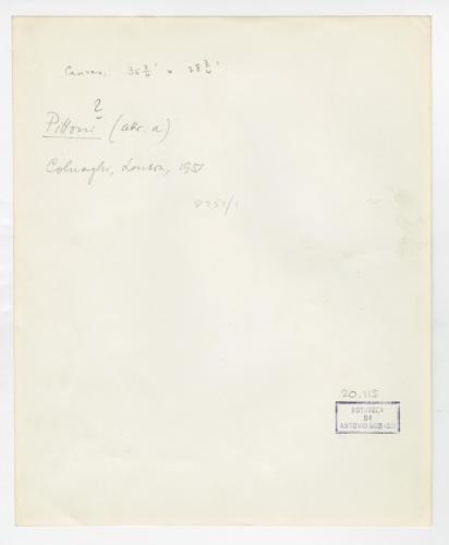 - ISCRIZIONI supporto primario: verso: in alto a sinistra - canvas: 35 3/4 x 28 3/4 - a matita -