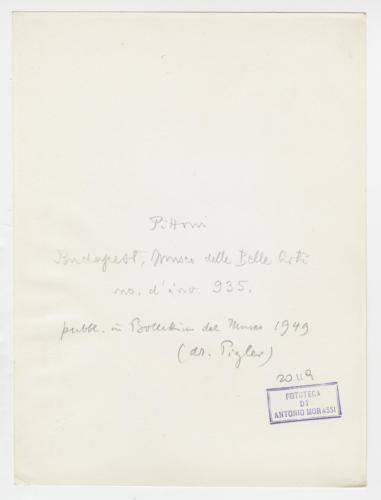 - ISCRIZIONI supporto primario: verso: al centro - Pittoni/ Budapest, Museo delle Belle Arti/ n.o d'inv. 935. - a matita -