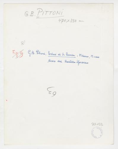 - ISCRIZIONI supporto primario: verso: in alto al centro - G.B. PITTONI/ 470 x 330 mm - a matita -