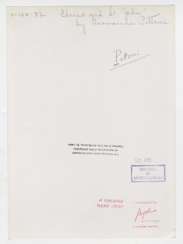 - ISCRIZIONI supporto primario: verso: in alto al centro - 1-104:32 Christ and St. John[sic!]/ by Giovanni Pittoni - a matita -