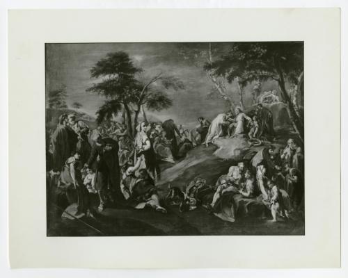 - ISCRIZIONI supporto primario: verso: in alto - da [sottolineato:] G.B. Pittoni/ Il miracolo dei pani e dei pesci/ Venezia, racc. privata (?)/ Esp. alla mostra di 700 ven. a Roma (presso "Antiquaria")/ n° 17, 1942 - a matita -