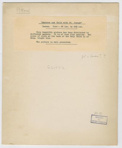 - ISCRIZIONI supporto secondario: verso: in alto a sinistra - [sottolineato:] Pittoni - a matita -