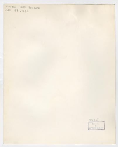 - ISCRIZIONI supporto primario: verso: in alto a sinistra - PITTONI, GIRL READING/ CAN. 10 1/2 x 13 1/2 in. - a matita -