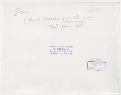 - ISCRIZIONI supporto primario: verso: in alto a destra - Leder[er] - a matita -