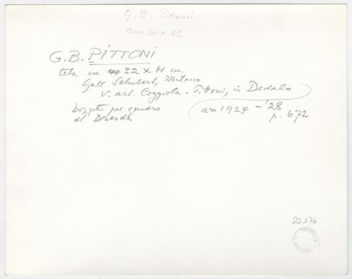 - ISCRIZIONI supporto primario: verso: in alto al centro - G.B. Pittoni/ cm 41 x 32 - a matita -