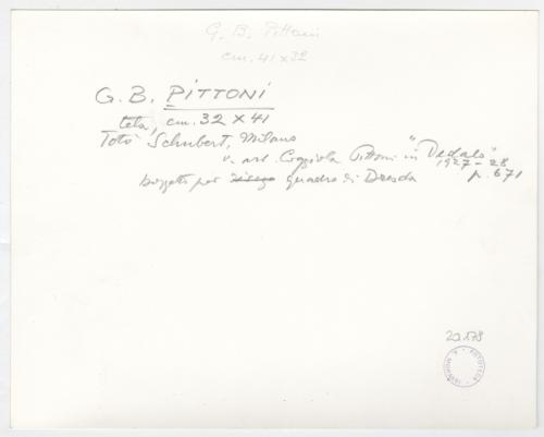 - ISCRIZIONI supporto primario: verso: in alto al centro - G.B. Pittoni/ cm 41 x 32 - a matita -