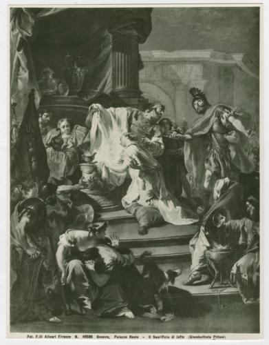 - ISCRIZIONI supporto primario: recto: in basso - Fot. F.lli Alinari Firenze N° 49586 Genova, Palazzo Reale - Il sacrificio di Jefte (Giambattista Pittoni) - a matita -