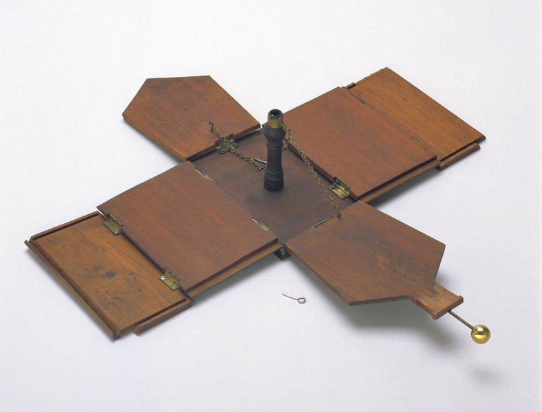 Questo modello di casa dalle pareti incernierate racchiude una piccola capsula d'ottone all'interno della quale può essere collocata della polvere da sparo. Una facciata della casa è dotata di parafulmine e di un tassello con un segmento di conduttore. Se il tassello è presente, una scintilla rilasciata da una bottiglia di Leida si disperde a terra. Se il tassello è rimosso, la scintilla accende la polvere nella capsula e la casa esplode. L'apparecchio illustrava l'utilità del parafulmine nella protezione degli edifici.
