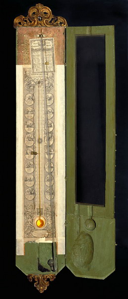 Strumento costituito da una tavola di legno verniciato di verde arricchita con intagli di legno dorati. Il barometro a sifone e il termometro ad alcool, fissati alla tavola, sono protetti da due sportelli, il più grande dei quali è munito di finestra in vetro, mentre quello inferiore, più piccolo, nasconde i bulbi dei due tubi di vetro. Il tubo barometrico è leggermente inclinato ed è affiancato da quello del termometro ad alcool. Le scale barometriche, le diciture in varie lingue, nonché gli eleganti segni zodiacali sono stampati su carta. Il termometro è sormontato dalla scritta "Thermometrum Academiae Florentinae". Due indicatori di tendenza scorrono lungo una coppia di fili metallici verticali. Lo strumento è firmato da Giovanni Domenico Tamburini, costruttore del quale non si hanno notizie.