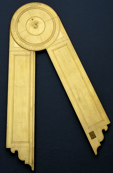 Regolo pieghevole costituito da due gambe larghe e piatte sulle quali sono incise varie indicazioni: la scala dei gradi, il quadrato delle ombre, la rosa dei venti, una divisione in parti uguali e un elenco di quarantadue città europee con le rispettive latitudini. Le gambe piatte, che presentano due traguardi, recano incise scale per la misurazione delle ombre e per disegnare poligoni regolari. Sulle gambe si trovano quattro visori reclinabili. Al punto di unione tra le gambe è posizionata una bussola completa di vetro e ago magnetico, con le ore tracciate lungo la circonferenza. Intorno alla montatura della bussola si legge un motto che ricorda la brevità della vita. Lo strumento consentiva di misurare le distanze terrestri e astronomiche con l'ausilio di una riga (oggi mancante) che, incernierata su una delle gambe, formava la base dei numerosi triangoli formati dal regolo. Tale base rappresenta una misura proporzionale alla distanza in lontananza.