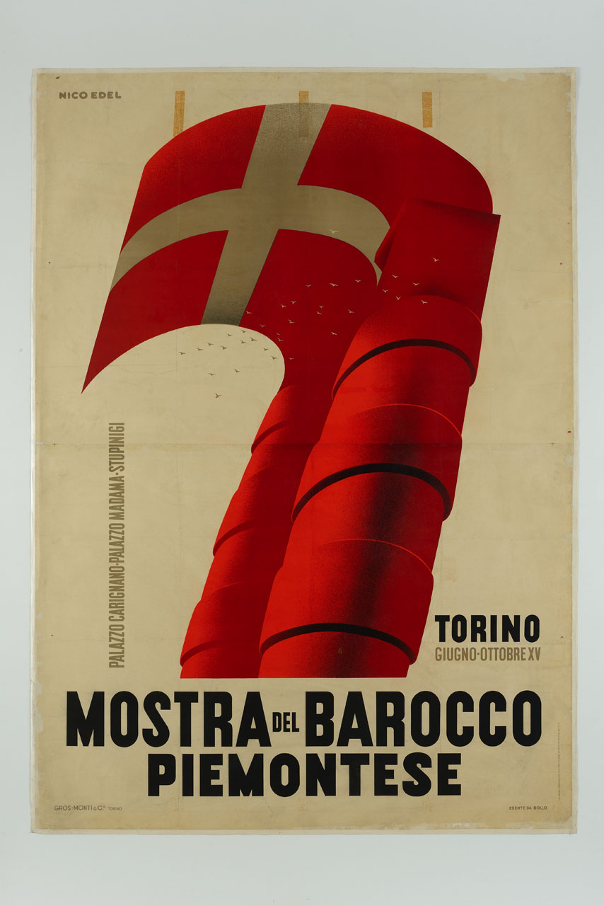 colonna scomposta culminante con bandiera Savoia (manifesto) di Edel Nico (sec. XX)