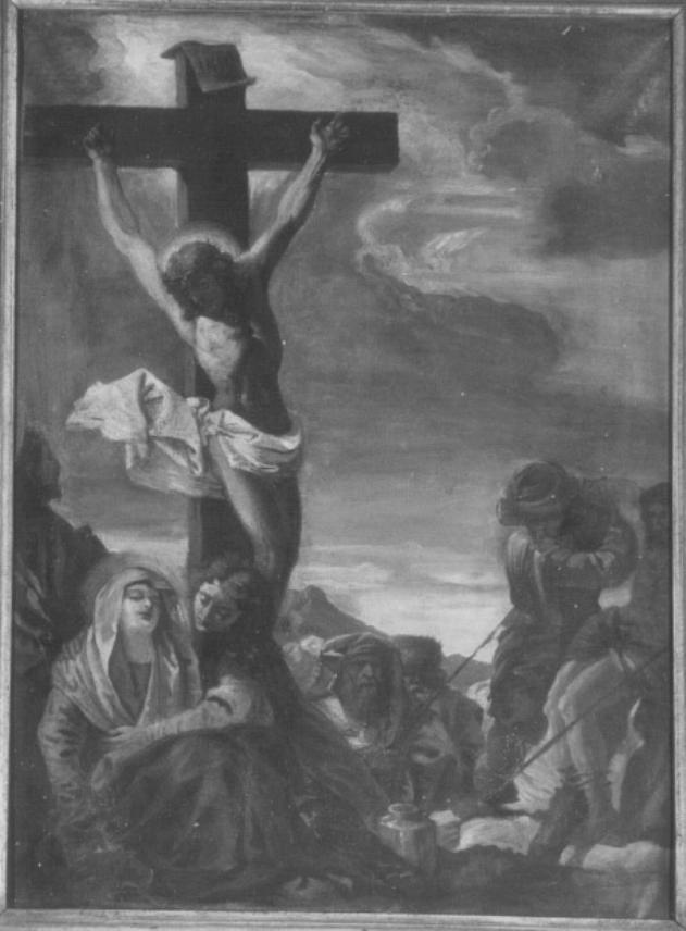 stazione XII; Gesù innalzato e morto in croce (dipinto) di Stecherle (sec. XX)