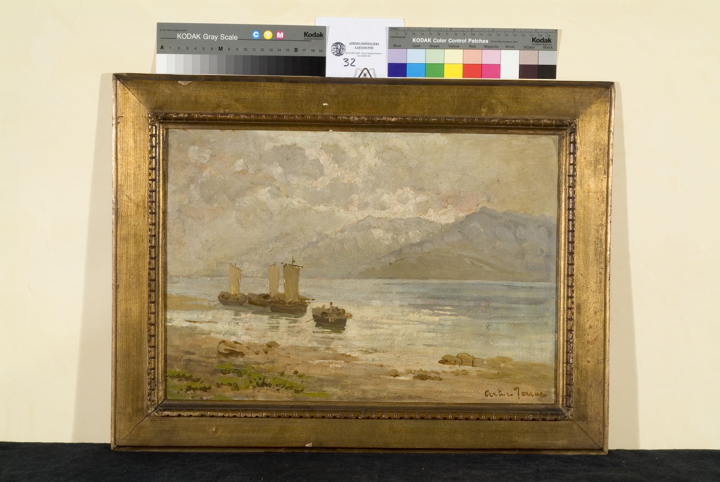 paesaggio lacustre (dipinto, opera isolata) di Ferrari Arturo (sec. XX)