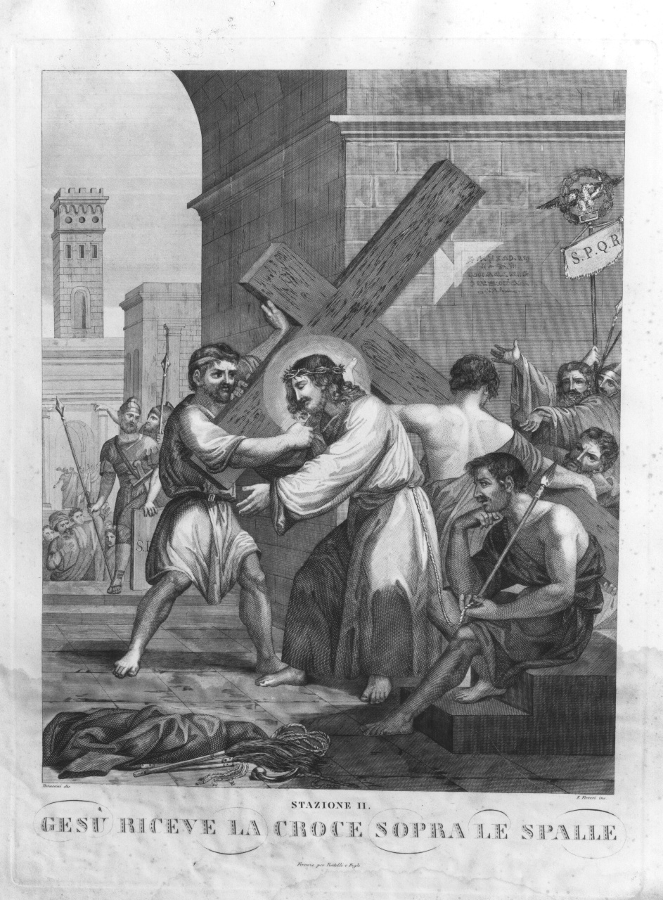 stazione II: Gesù caricato della croce (stampa) di Pieraccini Francesco, Ferreri E (secondo quarto sec. XIX)