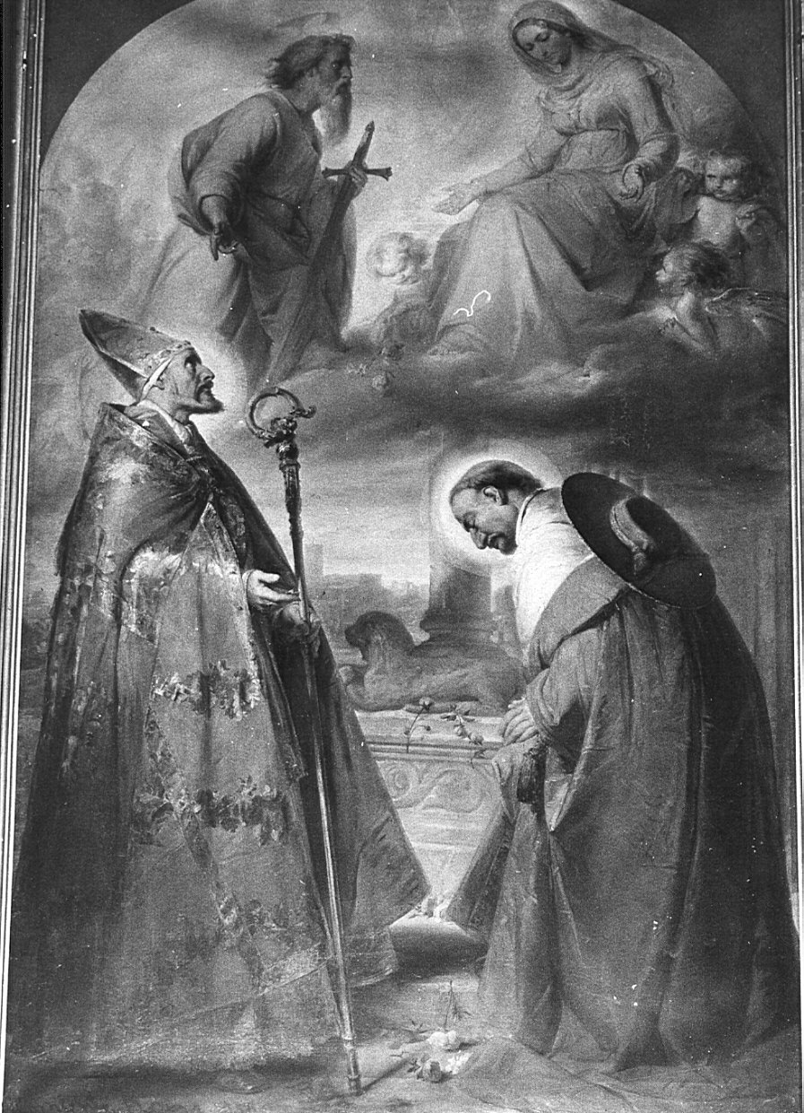 La Vergine e San Paolo venerati da San Carlo e Sant'Alessandro Sauli (dipinto, opera isolata) di Cornienti Cherubino (sec. XIX)