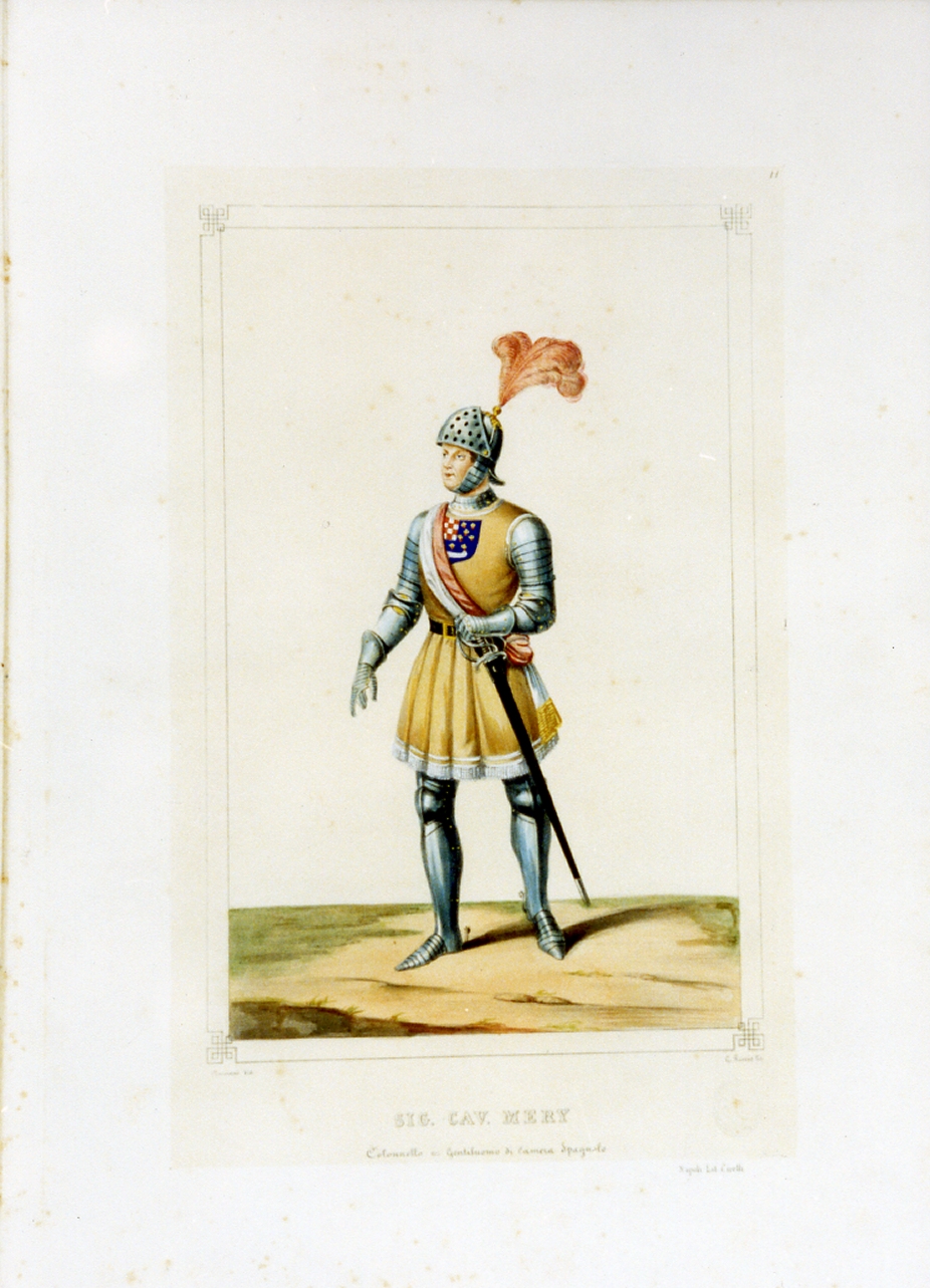 personaggio del torneo di Caserta nel carnevale del 1846 (stampa a colori) di Mariani Gregorio (sec. XIX)